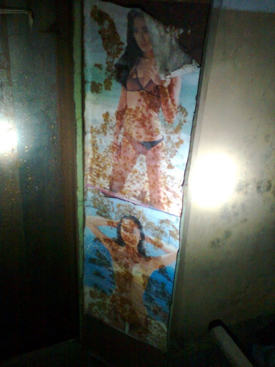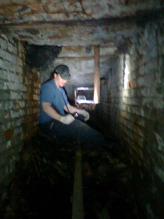 Один из диггеров, обнаружив в земле на месте бывшего здания воздухозаборный ход, спускается туда и начинает продвигаться на карачках. С одной стороны – завал. Ползем в другую сторону. На полу прохода большая плесень, штука не хорошая и опасная, лучше с ней не соприкасаться. Обстановка конечно аварийная, но до революции и первые годы после нее строили на славу, как говорилось на века, не то что сейчас… А зона фундамента и под ним всегда отличалась особой прочностью. Проход выводит в подвал, но он завален. Диггер выбирается на поверхность, и вот пара обнаруживает новый проход. Туда уже проникают вдвоем. Там, действительно, локальная система подвалов уже наполовину уничтоженная тяжелой техникой разрушителей, но что- то все же осталось. Вот старинная кирпичная кладка, вот оштукатуренные старые стены. А вот остатки подвальчика, служившего сауной. Судя по календарным открыткам китаянок, и прелестниц в стиле конца 80 х – нач.90 расклеенных в сауне, это место могло быть тайным борделем или притоном. Причем, как раз периода 90. Предположение, не более. Ну да ладно. На что только не натыкались диггеры в своих полазках.