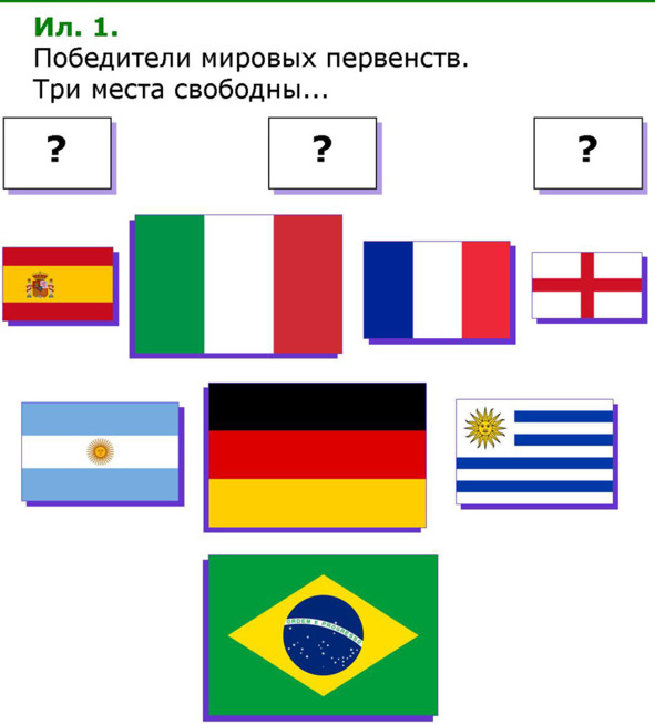 – Уругвай—2 раза (1930,..50 гг.), 9,5%.