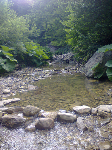 15-57. Одеваю одежду, плюс тапочки и…не спеша, с остановками…фыркая и глупо улыбаясь спускаюсь по реке. По щиколотку. Вода ледяная…пару метров и на камушек…потом опять…и так до конца…до рощи, где машина.