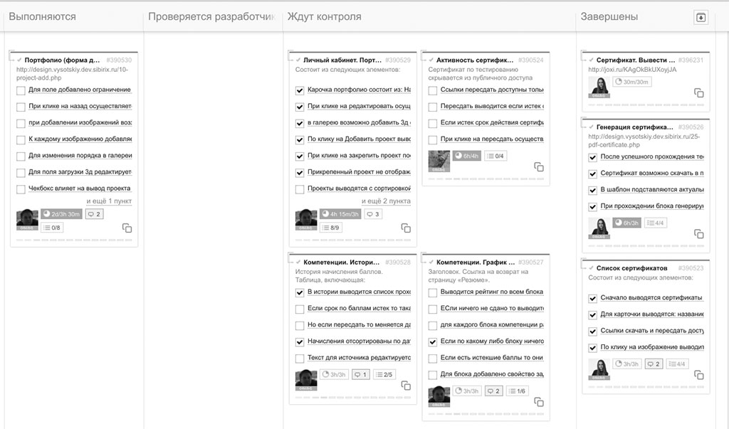 Карточки задач в канбан-доске спринта