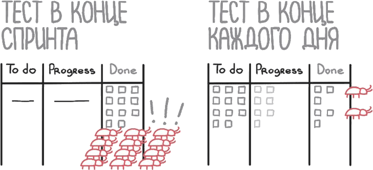 Откладывать на потом – плохая идея, однозначно! Вы можете забуксовать в самом конце, и у вас получится сырой спринт. Сдавать стыдно, выбросить жалко. Product Owner будет недоволен. А баги все равно придется фиксить.