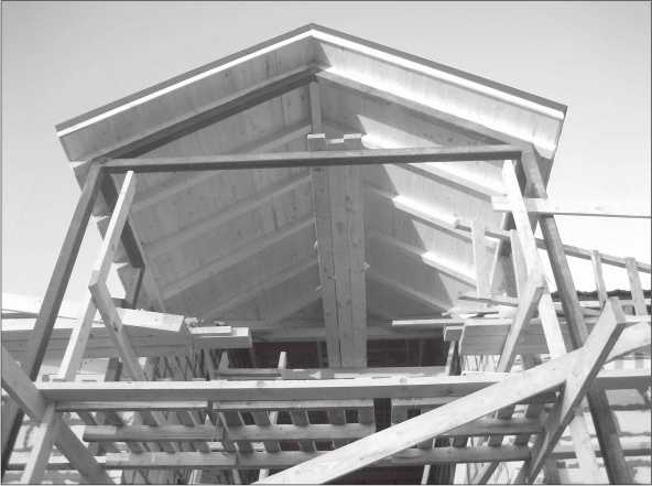 Несущая конструкция крыши состоит из стропил с затяжкой, подкосов, прогонов и обрешетки.