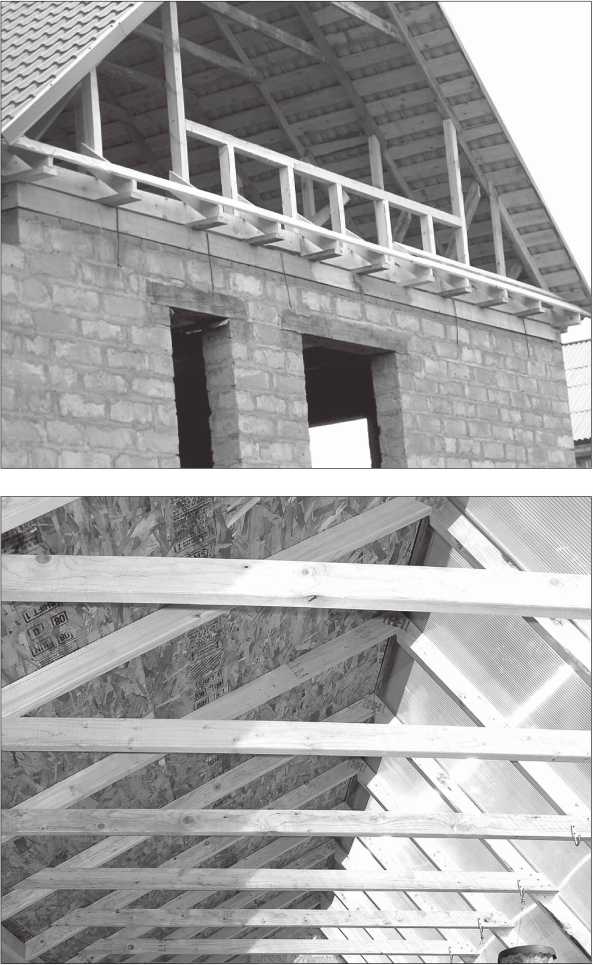 Нагрузка на конструкции зависит от толщины снегового покрова и материала кровли. Так, для крыши с уклоном более 50° снеговая нагрузка не учитывается, а для других видов кровли и уклонов принимается в зависимости от района строительства. Для центральных районов Европы эта нагрузка принимается около 100 кг/м2. Нагрузка от самой кровли зависит от типа кровельного материала. Нагрузка от кровли из асбестоцементных л истов составляет приблизительно 15 кг/м2, а из пазовой обожженной черепицы – 45–50 кг/м2.