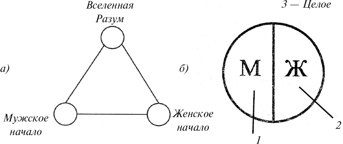 Разум – это состояние единства и взаимодействия самостоятельных противоположностей: мужского и женского начал. Основой существования разума является разделённость, самостоятельность и двойственность. Через них открывается путь к единству.