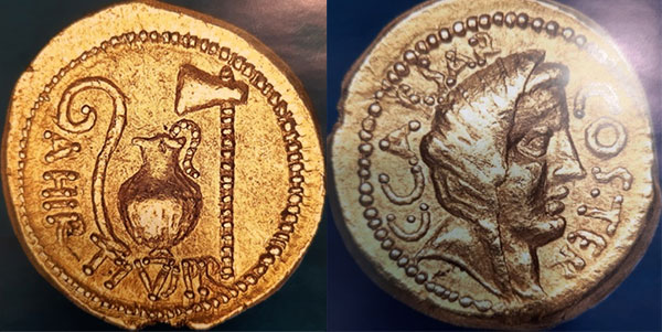 Илл. 27. Ауреус Юлия Цезаря с атрибутами понтифика