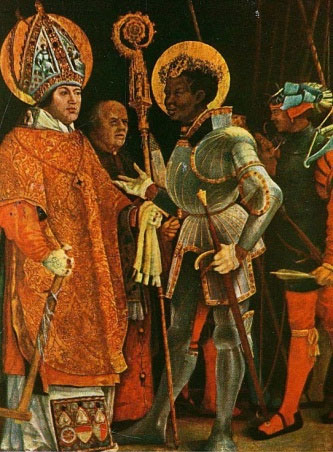 Илл. 29. Маттиас Грюневальд, XVI в. Встреча св. Эразма (с «папским» посохом) и св. Маврикия (справа)