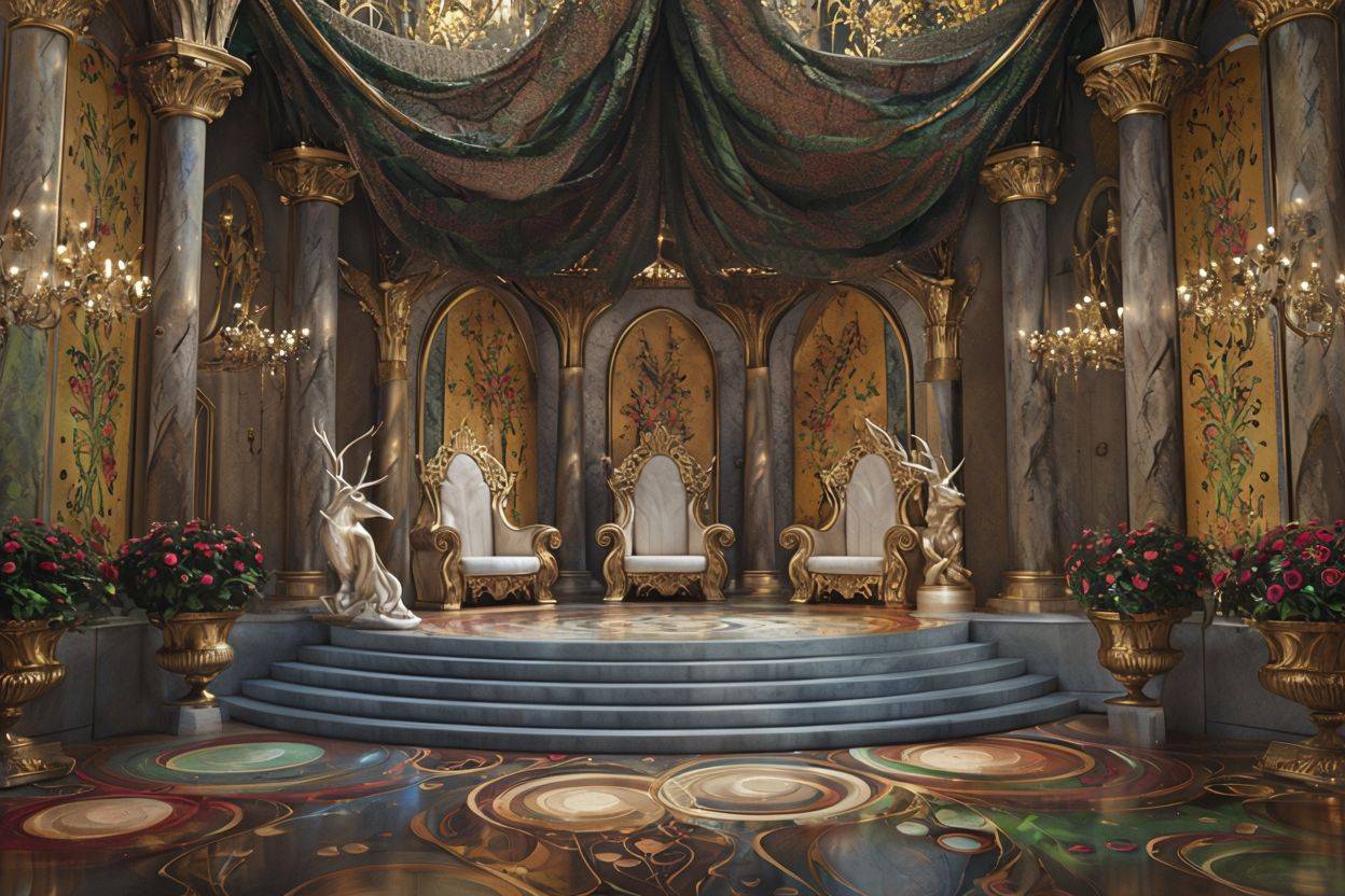 В тронном зале, на колоннах, украшенных изящной резьбой, изображающей переплетение ветвей растений, фигуры зверей и птиц, выглядывающих из-за цветов, висели светильники, струящие мягкий золотой свет. На троне, закинув ногу на ногу, сидел король Аурион Лаурерин. Его голова была увенчана короной, подобной венку, выполненному из сплетенных серебряных ветвей, украшенных драгоценными камнями, напоминающими лесные ягоды.