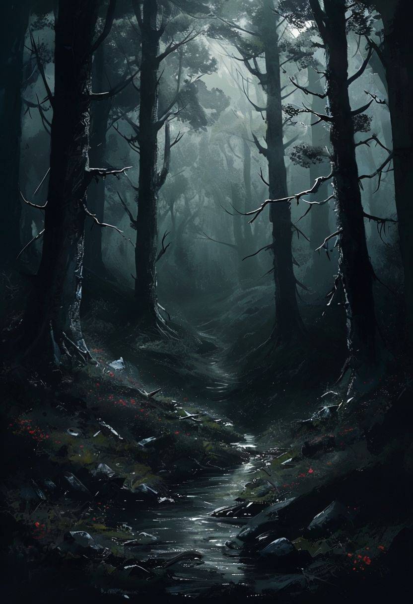 По неизвестным причинам деревья этого леса вознесли свои, окутанные мраком ветви, да так, что ни один солнечный луч не проникал в их чащу. В воздухе пахло гнилью. Ветви могучих старых деревьев стали голыми и сухими. Цикл жизни замер. В этом, некогда безмятежном краю, свет стал восприниматься как нечто дремлющее, глухое и недостижимое. Людская молва окрестила это место Лихолесьем.