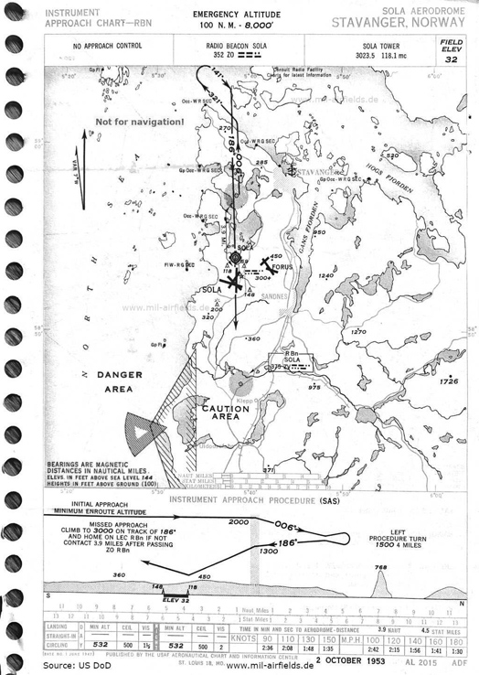 Район Ставангера и расположение аэропорта Сола на карте 1953 года