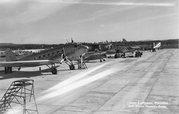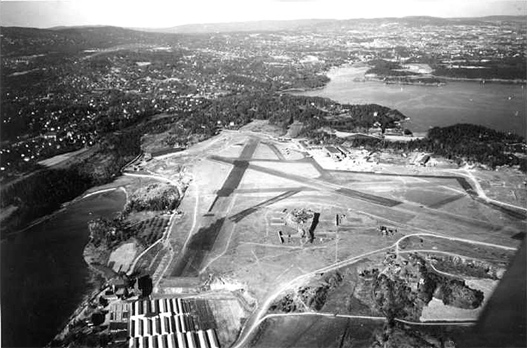 Аэродром Осло-Форнебю в 1947 году, вид с запада на восток, в сторону Осло