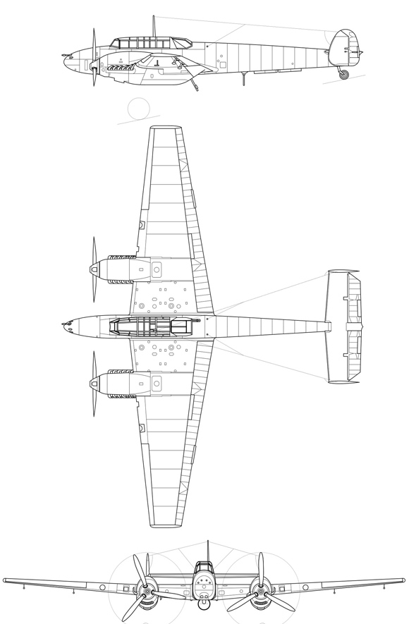 Схема тяжелого истребителя «Мессершмитт» Bf.110