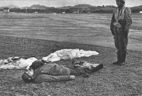 Убитый немецкий парашютист на аэродроме Форнебю