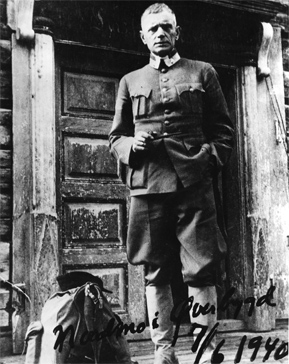 Генерал-майор Отто Рюге возле временного штаба норвежской армии на ферме Нордмо в Эвербигде, 7 июня 1940 года