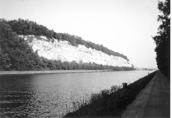 Альберт-канал к востоку от горы Сен-Петер и форта Эбен-Эмаэль. На заднем плане видны шлюзы Ланнай