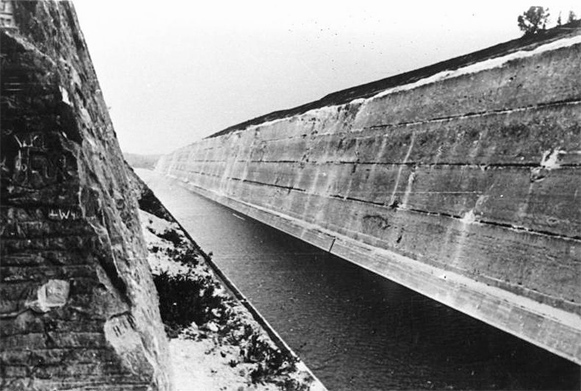 Разрез Кастер и шлюзы Ланнай. Справа виден бункер «Канал-Зюд». Фото из Бундесархива датировано 10 мая 1940 года