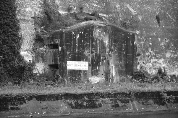Эбен-Эмаэль не походил на обычную крепость, какой ее принято представлять. Это была сложная система укрытых под землей бункеров, дотов и огневых точек. Снаружи он представлял собой плоский известняковый холм, частично покрытый лесом, окруженный противотанковым рвом и эскарпом. Холм возвышался на 60 метров над гладью Мааса, в нем были выбиты штольни для казарм, складов боеприпасов и продовольствия, электростанции и штабных помещений, а также шахты с лифтами и галереи, ведущие к внешним бункерам и наблюдательным позициям.
