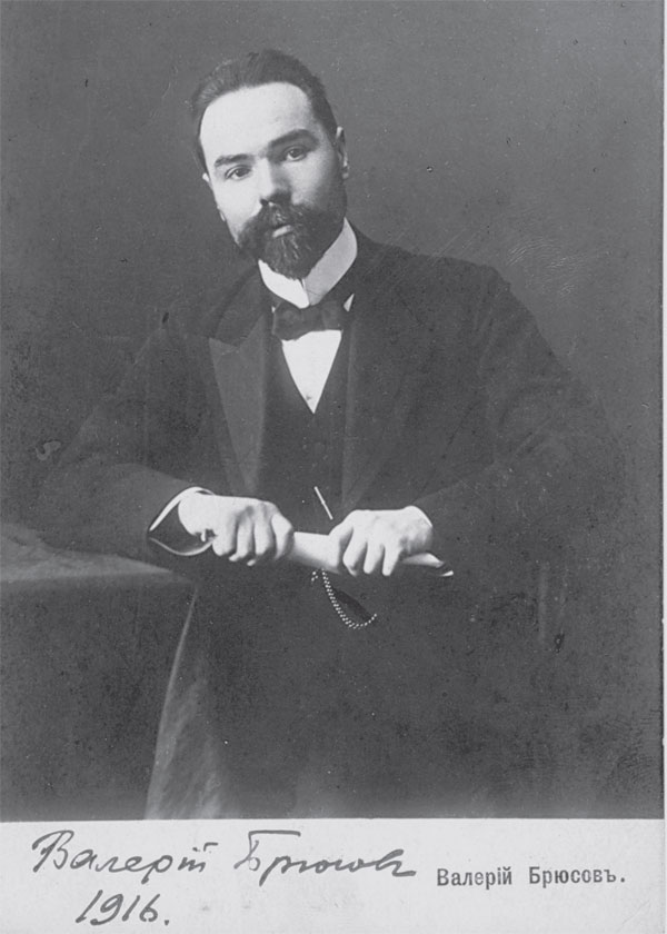 Когда я увидел его впервые, было ему года двадцать четыре, а мне одиннадцать. Я учился в гимназии с его младшим братом. Его вид поколебал мое представление о «декадентах». Вместо голого лохмача с лиловыми волосами и зеленым носом (таковы были «декаденты» по фельетонам «Новостей дня») увидел я скромного молодого человека с короткими усиками, с бобриком на голове, в пиджаке обычнейшего покроя, в бумажном воротничке. Такие молодые люди торговали галантерейным товаром на Сретенке. Таким молодым человеком изображен Брюсов на фотографии, приложенной к I тому его сочинений в издании «Сирина».