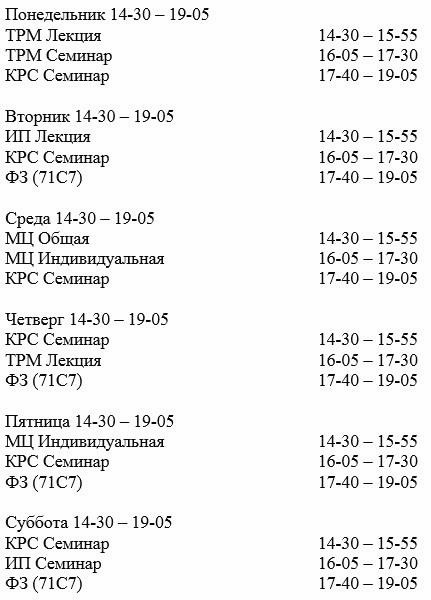 Само расписание выглядело так: