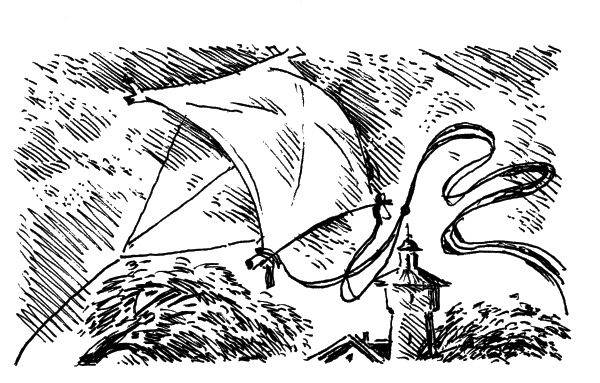 Бывает, что «конверты» падают. Если змей оборван порывом ветра, это еще полбеды: «конверт» подберут и отдадут хозяину. Хуже, если змей сбили голубятники. Они пираты. Они придумали, что воздушные змеи пугают голубей. И еще придумали закидушки. Это два камня и шпагат. Когда змей в воздухе, нить к нему от крыши тянется не прямо: она провисает и, прежде чем уйти вверх, проходит невысоко над землей. Здесь ее и заарканивают закидушками голубятники.