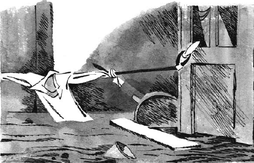 Стуча зубами, он оделся. Потом заглянул в шкаф. Там плавал большой глобус с пробоиной в районе Северной Атлантики, а в углу стояли две большие палки, обмотанные грязной марлей. Сначала Павлик не подумал, что это за палки. Просто решил, что они длиннее и удобнее, чем рейка. И взял их.