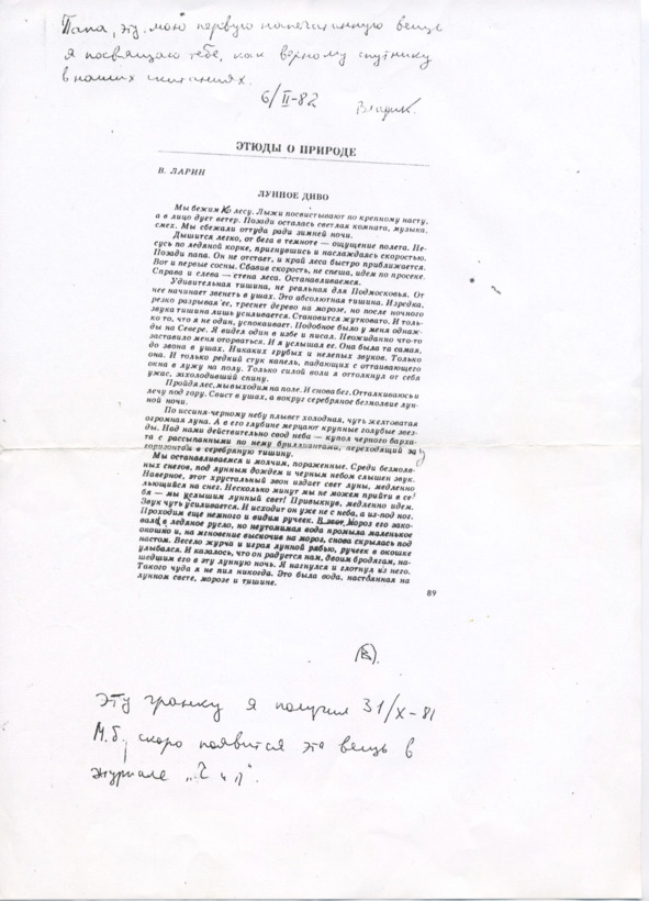– Я недавно листал подшивку «Зелёного еженедельника». Кажется, мне там встречалась твоя фамилия. Точно! Рассказ про старика который уходит по лунной дороге.