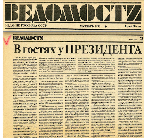 Материал опубликован в газете «Ведомости Госснаба», октябрь 1990 г.