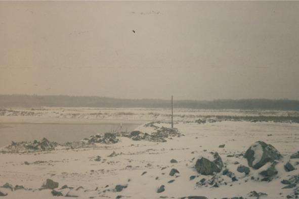 Бывшее озеро Карачай («водоём 9»), вид от радиохимического завода (фото Владислава Ларина, апрель 1993 г.)