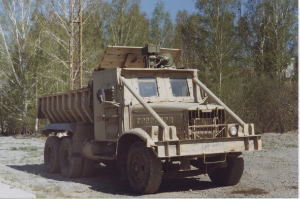 Такие машины со свинцовой защитой кабины водителя работают на засыпке бывшего озера Карачай («водоём 9») (фото Владислава Ларина, май 1999 г.)