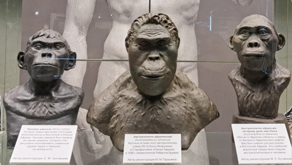 Не могу судить о том, насколько объективен метод Михаила Герасимова по восстановлению лиц, исходя из базового черепа. Но, если вернуться в Дарвиновский музей и рассмотреть лица древних людей, заметим, что останки первобытных, найденные в Европе, выглядят как европейцы, в Китае – как китайцы, в Африке – как африканцы.