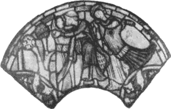 Рис. 60. Возвращение блудного сына. Витраж собора в Бурже, XII в.