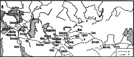 Рис. 20. Великий шелковый путь: а – основная трасса; б – ее ответвления.