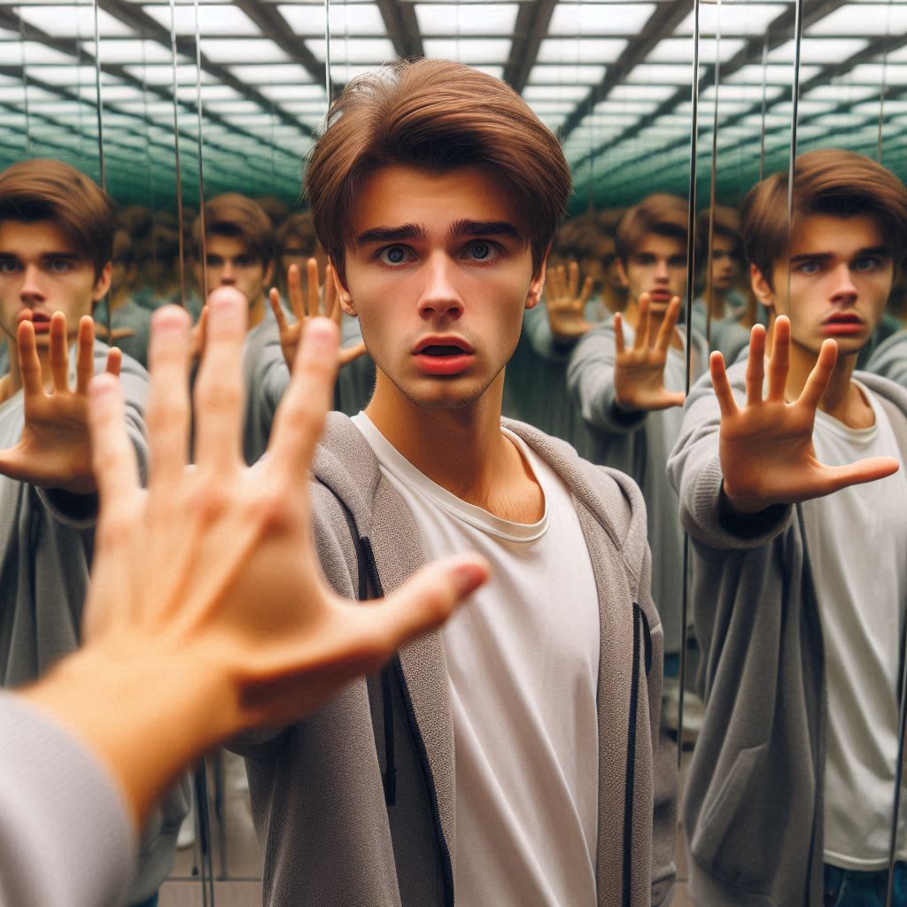 Эго также подошло к зеркалу, чтобы пожать руку себе же. Но за миг до того, как рукопожатие должно было свершиться, рука в отражении резко раскрылась, показывая ладошку, как будто говоря ему «стой!». После чего ладонь медленно поднялась к голове, чтобы поправить волосы, а мгновением позже отражённая тень Влада в зеркале развернулась и ушла прочь. В этот момент Эго застыло в ступоре. Эго пребывало в некоем промежуточном, непонятном ему же самому состоянии, и в процессе своего осознания, а тем временем истинный Влад уже стоял перед выходом. Он находился в соседней комнате, в которой также было множество зеркал, только он сам был с обратной их стороны, где виднелось огромное множество зеркальных дверей. Влад, недолго подумав, направился к одной из дверей – времени практически не оставалось, и его Эго уже выходило из созданного для него барьерного состояния, а значит, нужно было действовать.