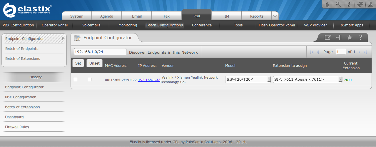 При установке SIP-телефонов в одной локальной сети с сервером Elastix или при подключении офисов к Elastix через VPN-каналы открывается возможность удаленной централизованной настройки (Autoprovisioning), доступной в меню PBX\Batch Configuration\Endpoint Configurator: