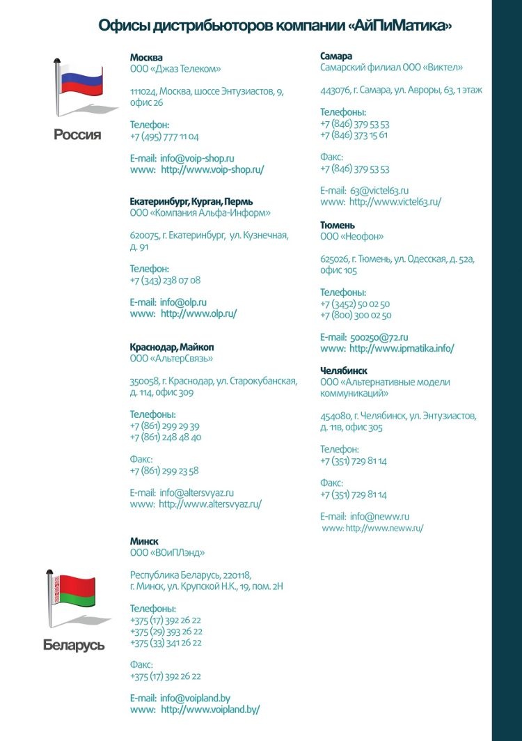 • Поддержка стандартных кодеков G.711, G.726, G. 729AB, G.723.1