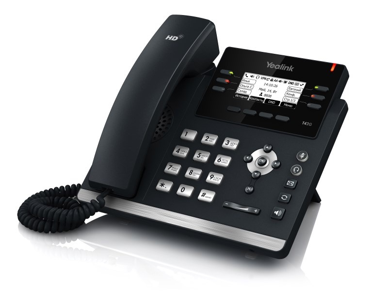 • Шесть учетных записей SIP, 6 кнопок BLF одноцветной индикации, 10 кнопок BLF двухцветной индикации