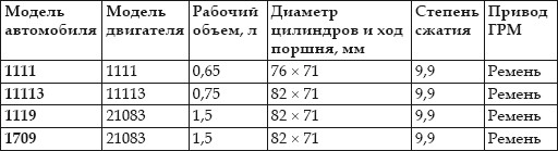 Таблица 1. Модели автомобилей ВАЗ и соответствующие им двигатели