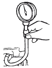 Степень падения мощности определяют по степени снижения компрессии в цилиндрах прогретого двигателя. Вставив наконечник компрессометра в отверстие для свечи (рис. 4), вращают коленчатый вал стартером до момента стабилизации показаний компрессометра. После проведения замера выпускают воздух из компрессометра и замеряют компрессию в других цилиндрах.