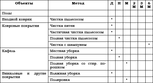 Деятельность персонала не может быть эффективной, если на предприятии не поддерживаются чистота и порядок. Они важны для безопасности, гигиены и эффективности работы. Ниже приведен рекомендуемый график уборки помещений.