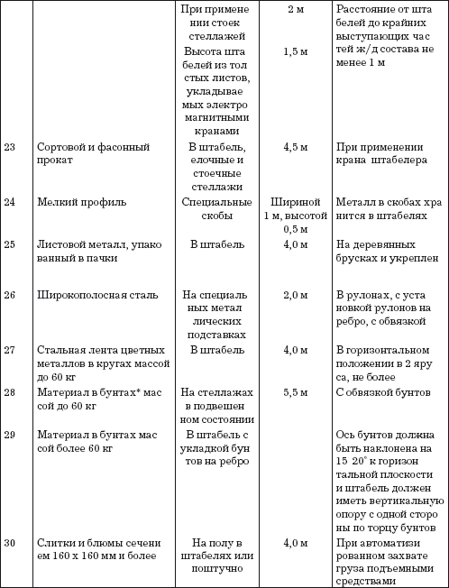 Для затаренных и штучных товаров обычно применяют штабельный и стеллажный способы укладки.