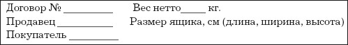 При невозможности нанести маркировку полностью на боковых или торцевых сторонах, на малогабаритных ящиках высотой 200 мм и менее допускается маркировка на смежных стенках тары (в том числе на крышке).