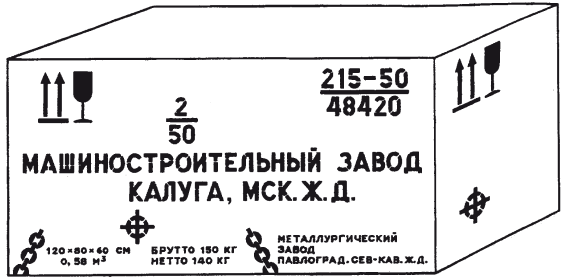 Маркировка должна производиться на упаковке условными обозначениями (знаками), выраженными надписью, буквами, цифрами или рисунками (символами) с применением контрастной краски. Цвет краски должен резко отличаться от цвета тары или груза.