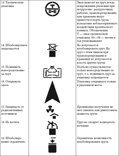 В таблице 1 приведены примеры некоторых манипуляционных знаков.