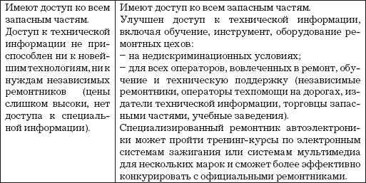 – лучшие условия для независимых ремонтников (доступ к технической информации, обучению и т. д.);