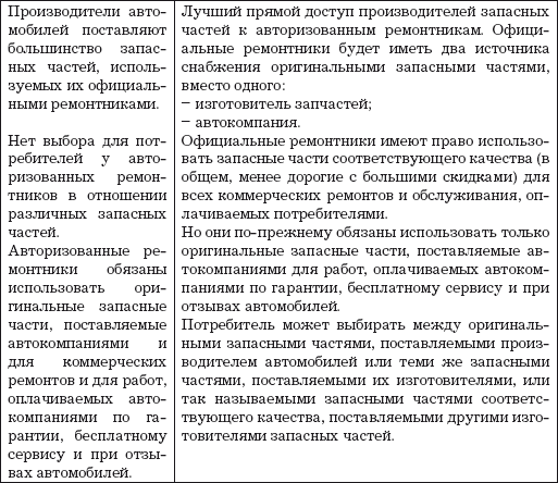 Увеличены выгоды для изготовителей запчастей соответствующего качества, ремонтников и потребителей при сохранении безопасности.