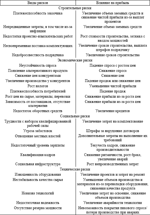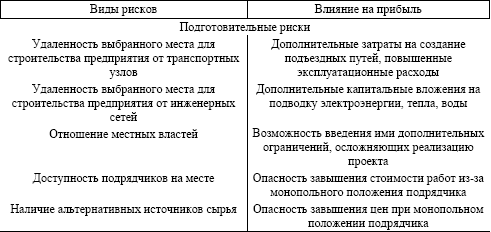 Ниже приведен примерный перечень отдельных рисков, которые могут появиться на различных этапах создания и осуществления планируемой деятельности производственного предприятия.