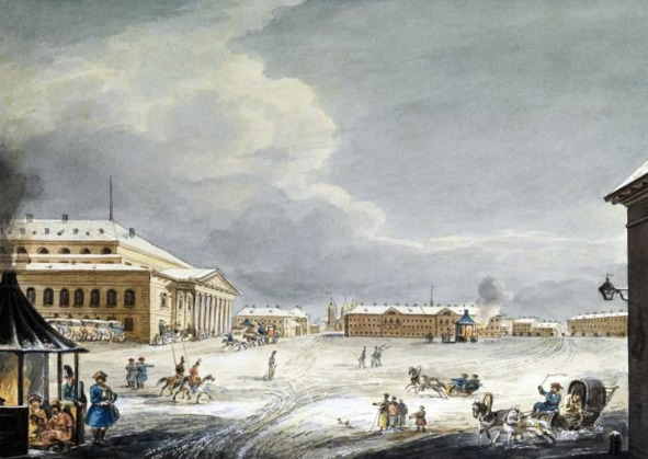 Театральная площадь в Санкт Петербурге. 1820 г. Художник К. И. Кольман