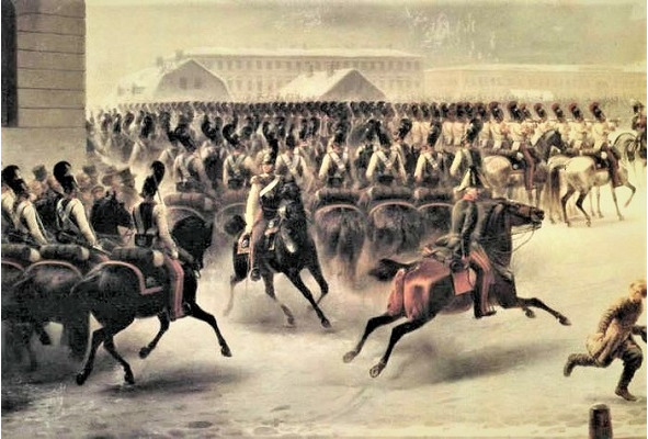 Восстание 14 декабря 1825 г. на Сенатской площади (фрагмент). 1853 г. Художник В. Ф. Тимм.