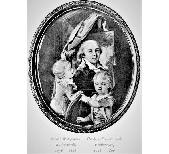 Ф. Ф. Вадковский с сыновьями Иваном и Павлом. Репродукция миниатюры работы неизвестного художника. Конец 1790-х гг.