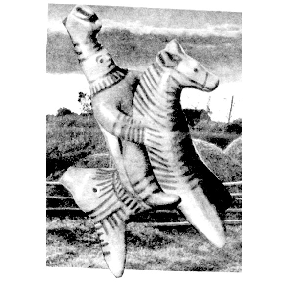 Сызмальства в их многочисленных крестьянских семьях дети играли незатейливыми глиняными свистульками. Но удивительно, каким многообразным и таинственным рождался сказочный мир, выстроенный из глиняных поделок в детском сознании! Вот грозный всадник промчался по дорожной пыли мимо на лихом коне далеко, за околицу! Видать, гонец в губернию помчался! А эта барышня, «тётка Анастасия», несёт курицу на рынок, ей навстречу соседка, «тётка Лизавета». «Зацепились барышни языками», и давай кудахтать, косточки всем перемалывать! Заливается свистом свистулька барышни… Ха-ха! – смеётся маленький Коля, играя у дома на деревенской дороге в глиняные фигурки.