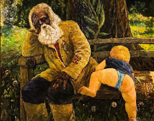 Дед с внуком. Худ. Н. В. Денисов. 1974 г.